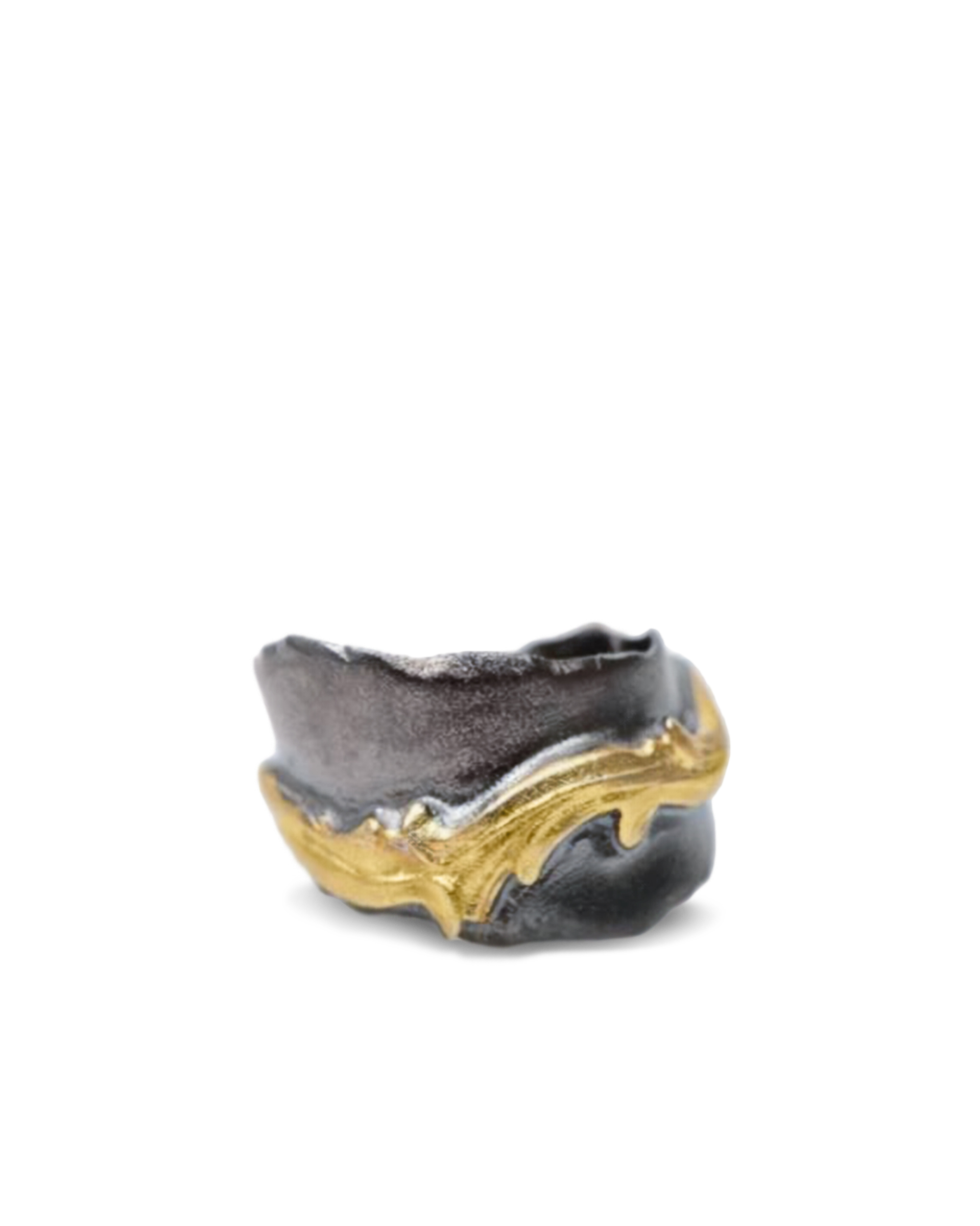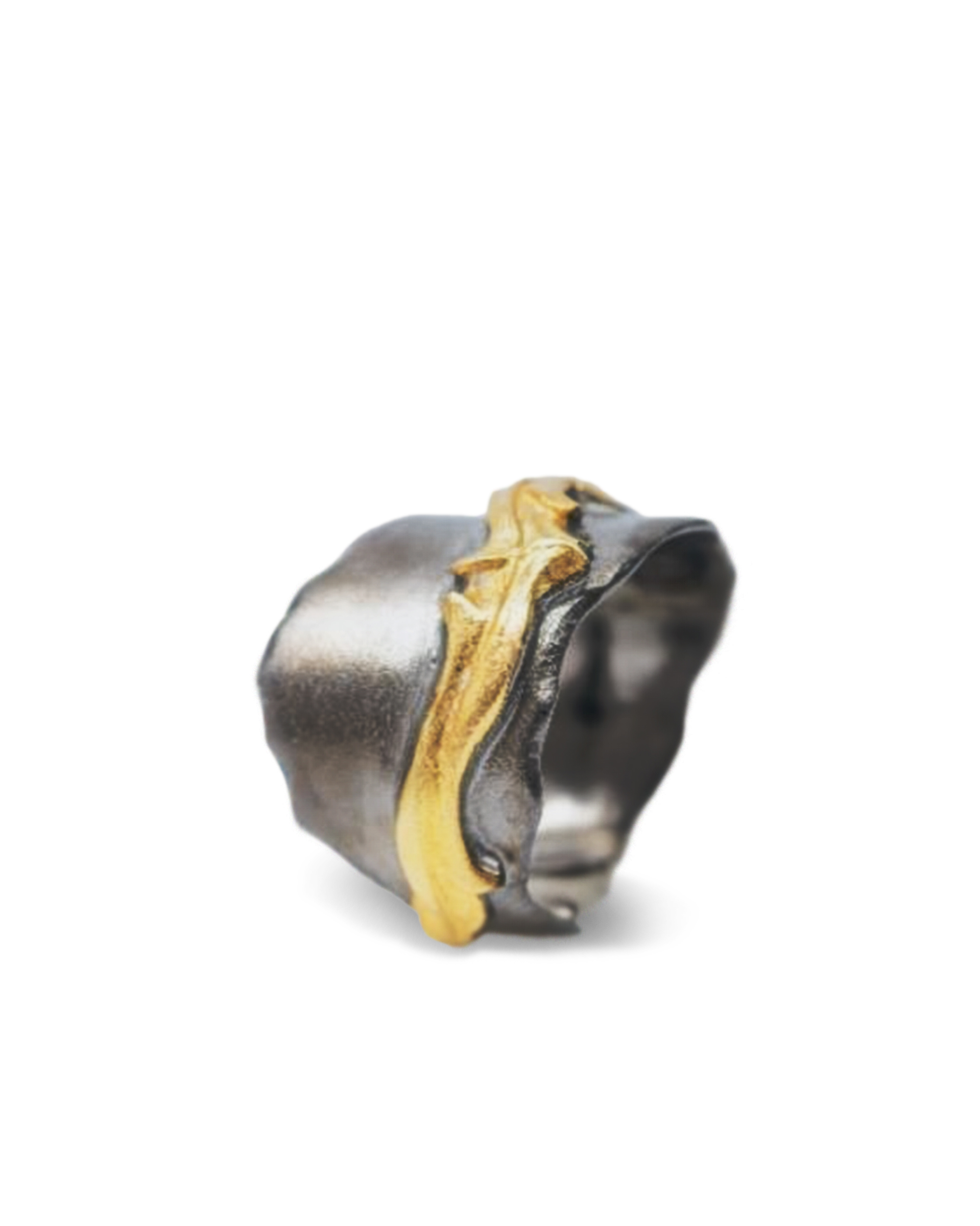 Χειροποίητο δαχτυλίδι από  ασήμι 925 με επιχρύσωση 18 Κ. και επεξεργασία επιροδίωσης της Σίσσυ Κούκερη.