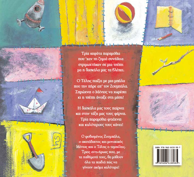 Προβλήματα που απασχολούν πολλούς γονείς και ακόμα περισσότερους νηπιαγωγούς και δασκάλους. Το νέο βιβλίο της γνωστής συγγραφέα Κατερίνας Μουρίκη γίνεται εργαλείο στα χέρια των ενηλίκων και χαρούμενο παιχνίδι στα χέρια των παιδιών. Κείμενο ευφάνταστο και κεφάτο. Στίχος προσεγμένος με λέξεις εύηχες και ομοιοκαταληξίες ευρηματικές. Παραμύθια που θα κερδίσουν αμέσως όλα τα παιδιά. Θα τα ακούσουν, θα τα διαβάσουν και θα τα αποστηθίσουν εύκολα χάρη στην προσεγμένη ρίμα και το σωστό μέτρο. Ένα μικρό δείγμα γραφής διαβάζουμε στο οπισθόφυλλο του βιβλίου: Τρία κεφάτα παραμύθια που χαν τη ζημιά συνήθεια στριμωχτήκαν σε μία τσέπη μα η δασκάλα μας τα βλέπει. Ο Τέλης παίζει με μια μπάλα που την πήρε απΆ την Ζουμπάλα. Σπρώχνει ο Μένιος να χωρέσει κι η τσέπη άνοιξε στη μέση! Η δασκάλα μας τους παίρνει και στην τάξη μας τους φέρνει. Τρία παραμύθια φτιάχνει Και καλύτερους τους κάνει! Ο φοβισμένος Ζουμπάλα, ο ακατάδεχτος και μοναχικός Μένιος και ο Τέλης ο τεμπέλης. Τρεις αντι-ήρωες που, με τα παθήματά τους ,θα μάθουν όλα τα παιδιά πώς να γίνουν ακόμα καλύτερα!