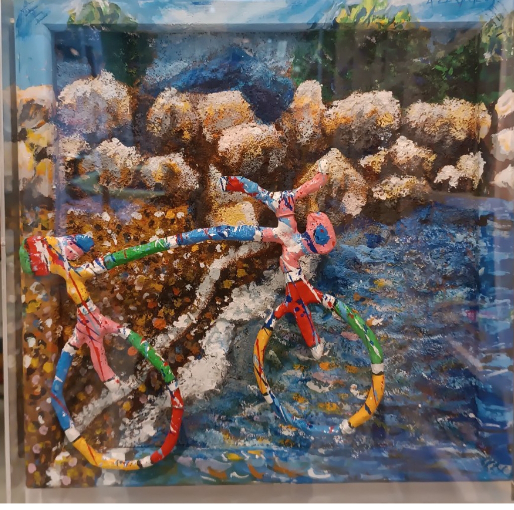 Έργο του Ανδρέα Ψαράκου με μεικτά υλικά σε plexi glass.