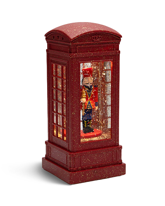 Για την πιο όμορφη χριστουγεννιάτικη διακόσμηση και ατμόσφαιρα σας προτείνουμε αυτόν τον Τηλεφωνικό θάλαμο με Καρυοθραύστη. Στο εσωτερικό του έχει νερό με χρυσόσκονη , είναι φωτιζόμενος με led και δημιουργεί παραμυθαίνια αίσθηση. Διαθέτει timer on/off και λειτουργεί με μπαταρίες.