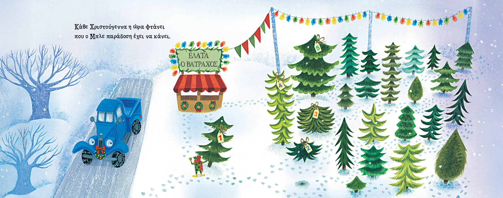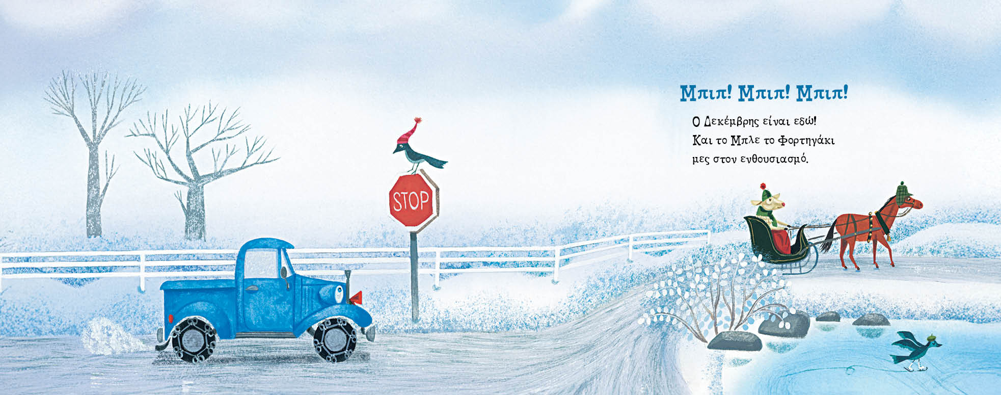 Επιτέλους έφτασαν τα Χριστούγεννα, οι πιο υπέροχες μέρες του χρόνου! Το Μπλε Φορτηγάκι πηγαίνει όλο χαρά να φορτώσει τα ελατάκια για να τα μοιράσει στους φίλους του τα ζώα.